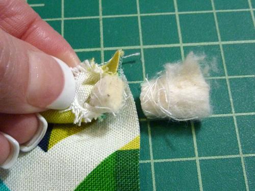 - Replace the fabric back into its original position. By removing the ends of the piping cord, you remove its bulk from what will be the bottom seam of the bag.