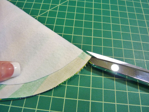 - Clip to, but not through, the line of stay stitching every ½”. This gives the stiffer rip stop nylon a bit more “give” to form a circle.