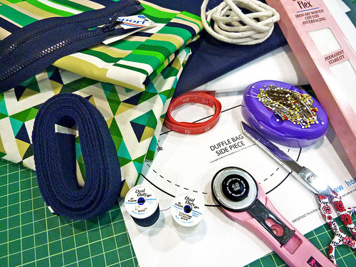 Bags in round or barrel shapes make a great style statement, but they can seem intimidating when you’re new to sewing. If you’ve passed over these projects before, it’s time to stop, look, and listen. We’ve cleverly adapted the construction of this duffle to allow you to do the majority of the steps with flat pieces. 3D is great when watching the latest super hero movie, but flat is friendlier for sewing.