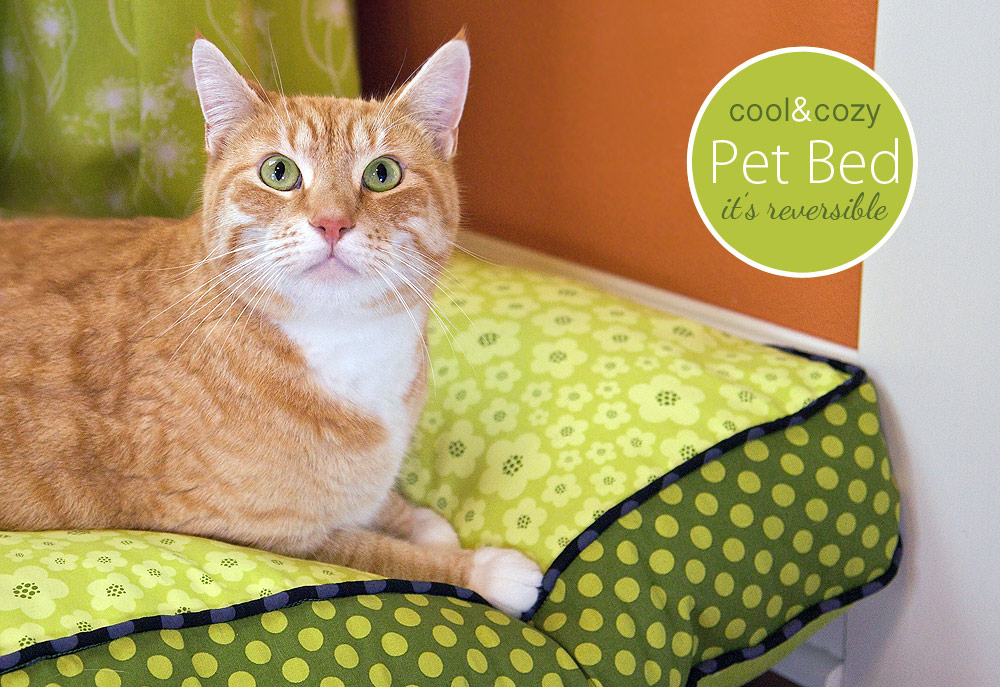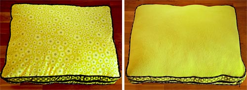 The finished size of our bed is about 18″ x 24″, which makes it good for a smallish dog or a giant cat… as shown above. You can expand, or reduce, the dimensions as needed to best fit your best friend.