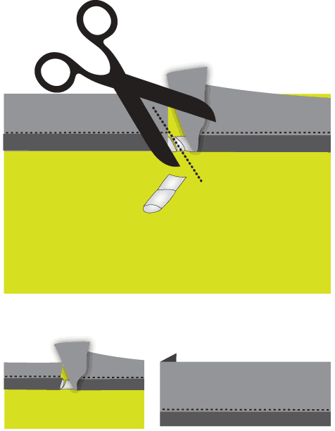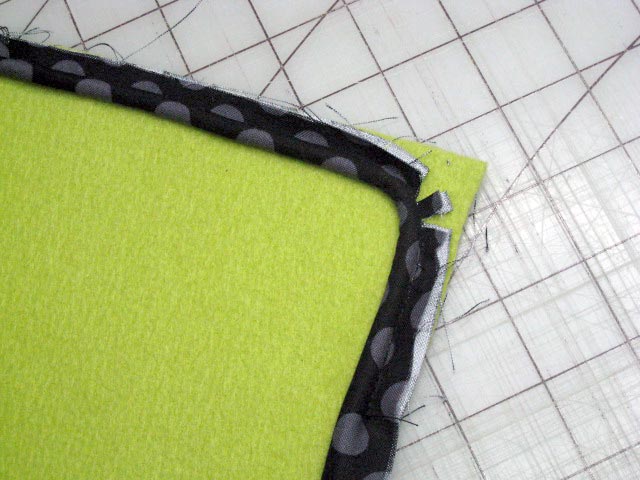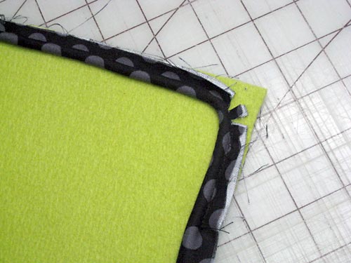 - You will need to make small snips into the seam allowance so the piping can turn the corner smoothly.
