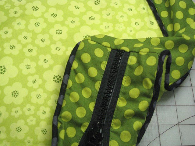 - Fold the two strips right side out (to either side of the zipper teeth) and press.