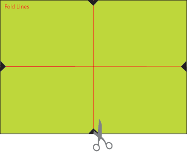 - Fold each piece (the layered cool piece and the warm piece) in half in both directions to find the center of each side. Cut a small notch at the center of each side of each piece. Set aside.