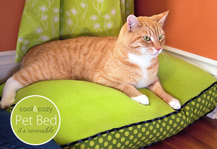 If you’re hanging out in the kitchen, chances are your favorite pet is hanging with you. Shouldn’t he (or she) have a matching cushion? Pet psychologists have long warned that forcing your furry friend to sleep on a ratty old bedspread can lead to deep-seated resentments … and hair-balls. I have no idea if that’s true, but I liked pretending to be a pet psychologist. Back to the Pet Bed… ours flips over: one side is a cool cotton, the other side is cozy fleece. There’s an easy-to-insert zipper in one side so you can remove the cover and toss it in the wash.
