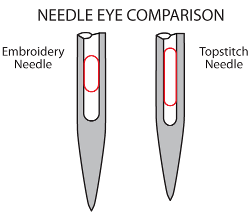 Topstitch needles are also available in larger gauges than standard embroidery needles. Larger needle gauges are helpful when embroidering in cotton thread on heavier fabrics, such as denim or duck cloth.