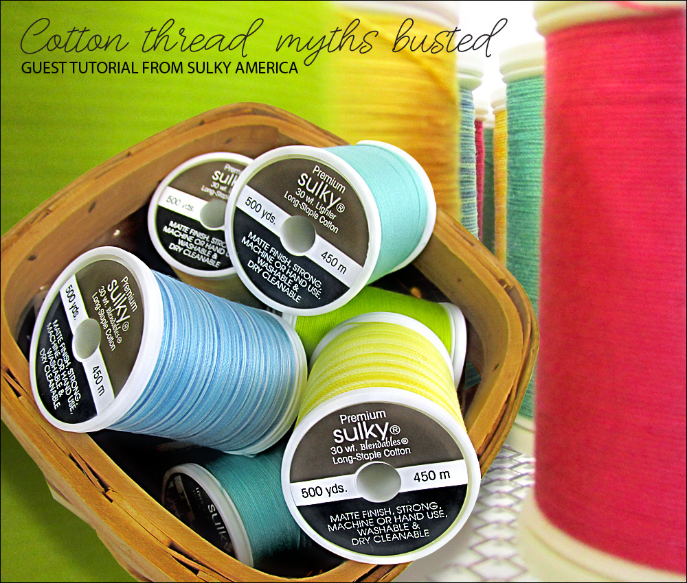 One of the most common requests we receive is for help selecting the best thread for a project. The types from which you can choose can seem almost endless when you’re staring at the hundreds of pretty spools at your favorite retailer. We turned to our friends, Ellen March and Pamela Cox from Sulky America for some expert advice – particularly about cotton thread options. Read on for their insights and information as well as to find out which myths they’re bustin’.