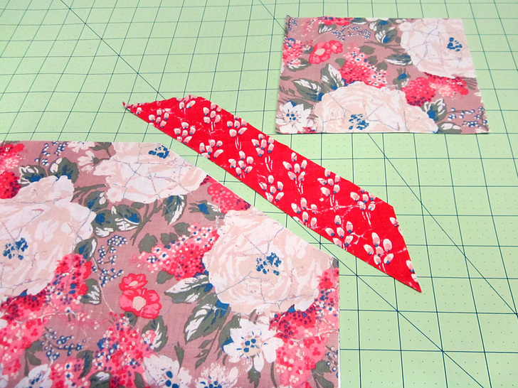 - Place the two fabric squares right sides together, making sure your carefully fussy cuts motifs are running in the same direction on each piece.