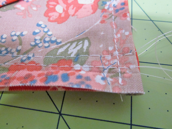 - Machine baste around the remaining three raw edges, using a ¼” seam allowance.