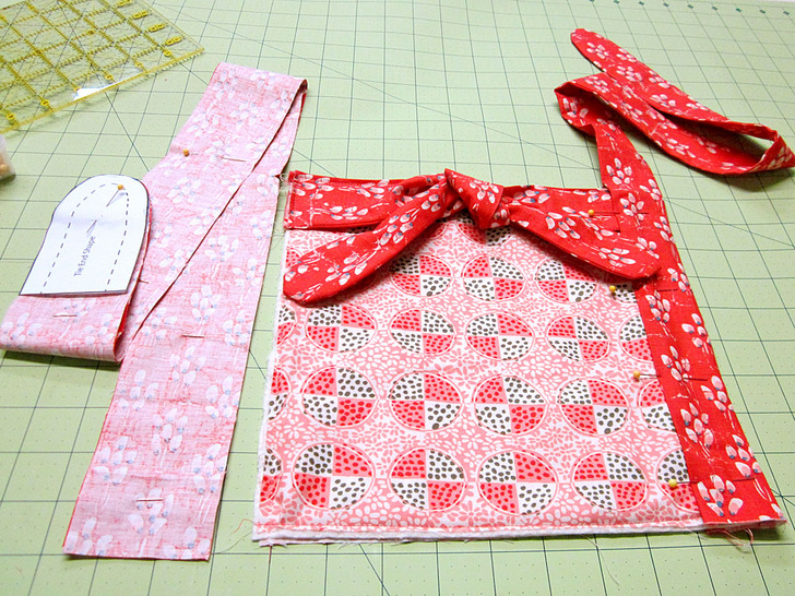 - Download and print the Apron Tie Shape Template.