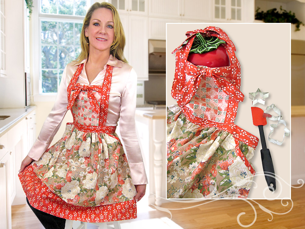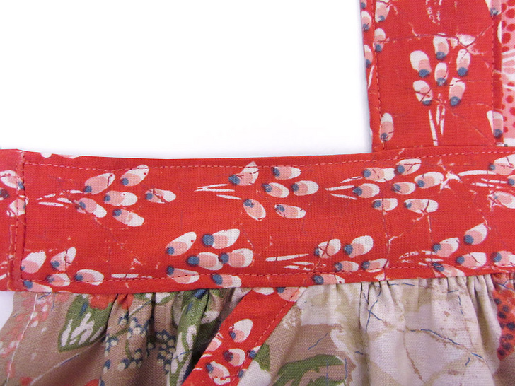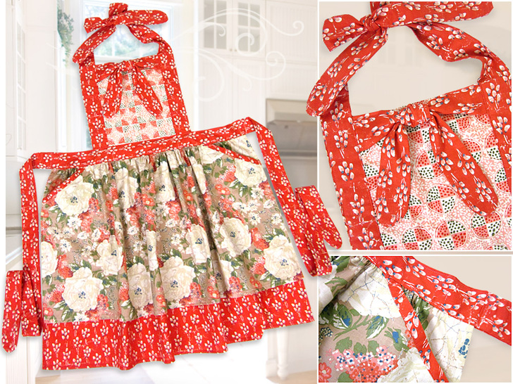 This charming apron blends three different fabrics to create a wonderful swirl of colors and motifs. You’ll love the unique details that bring it all together: bound slash pockets, two gathered tiers for the skirt, and a framed bodice with a cross-tie at the top. Even with all these custom accents, this is still a very easy project.