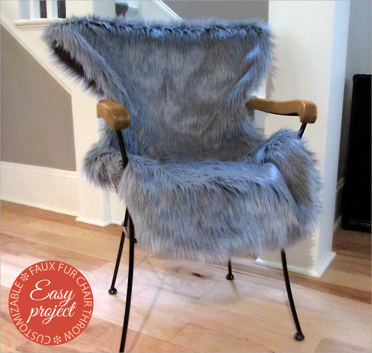 Transform a plain wooden, plastic or metal chair by covering it with some instant softness and warmth. Our faux fur and suede throw is cut to resemble the natural, hourglass shape of an animal pelt. The gentle curve gives it a lovely drape from back to seat. We show you how to use an ordinary bath towel to create a custom pattern for your chair. We just spotted a similar option online from a top home décor retailer!