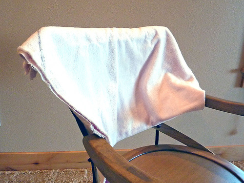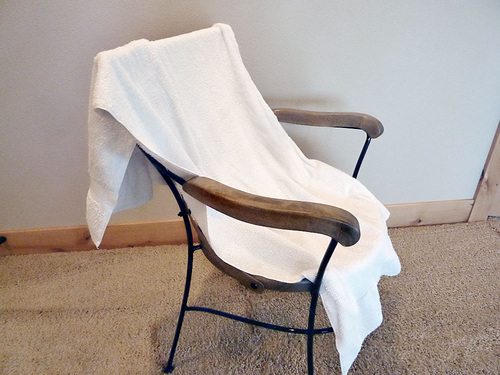 - Put the towel (or similar) on the chair, draping it over the back and seat as the throw itself will sit.