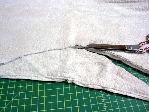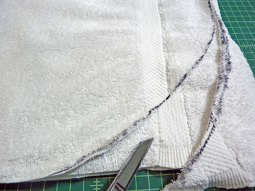 - Remember, the towel is still folded in half widthwise. Trim through one layer at a time.