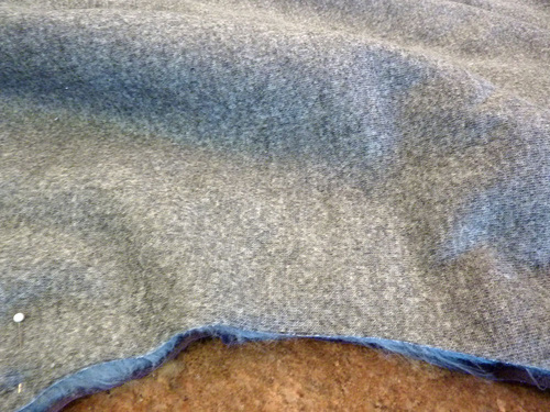 - Place the faux fur wrong side up on your work surface. Make sure the nap is running down. Place the towel pattern on the faux fur. This is a large piece; working on the clean floor or a large kitchen counter island is a good option.