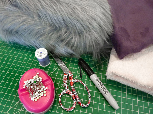 - 1⅓ yards of 58″+ wide faux fur with a long pile (pile is the term for the hairs – you want long, luxurious hairs)