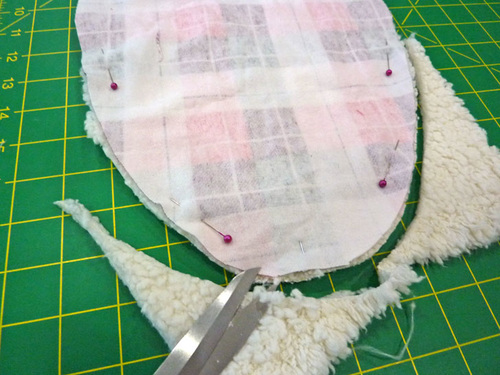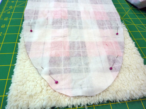 - Using one of the rounded flannel rectangles as a pattern, cut TWO matching panels from the sherpa.