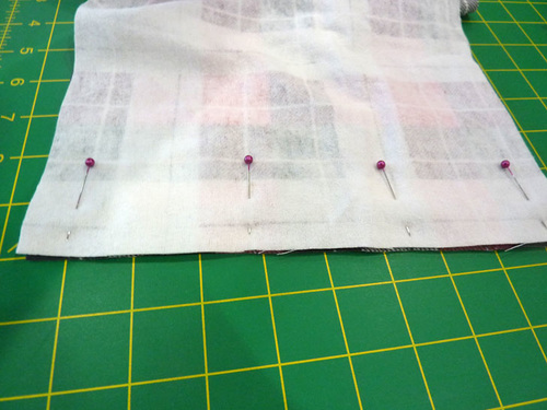 - Flatten and smooth the layers so the two back seams are perfectly aligned. Pin across the seam through both layers.