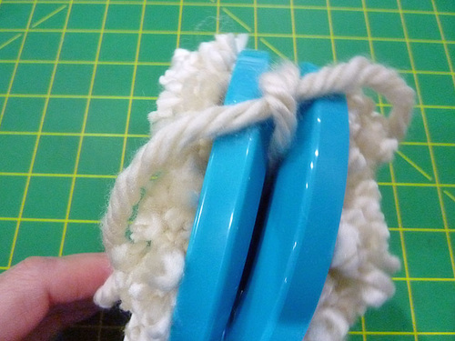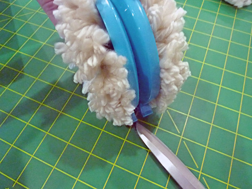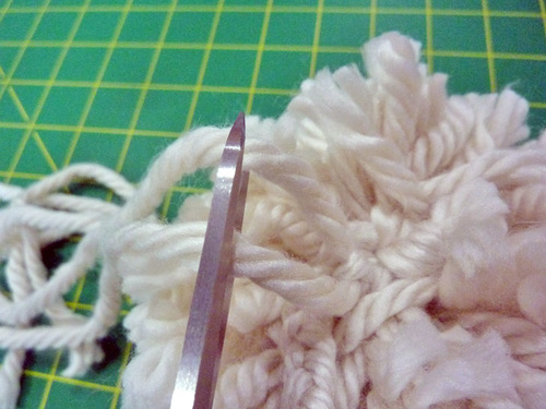 - Trim the pom’s ties so they are flush with the rest of the pom.