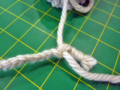 - Near the knot at one end, separate the strands slightly, opening a small hole.