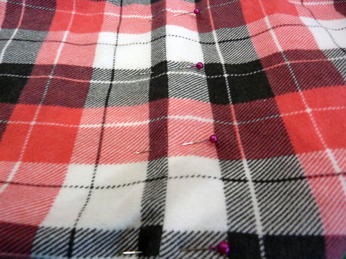 - Place the two panels right sides together, aligning the plaid motif. Pin in place.