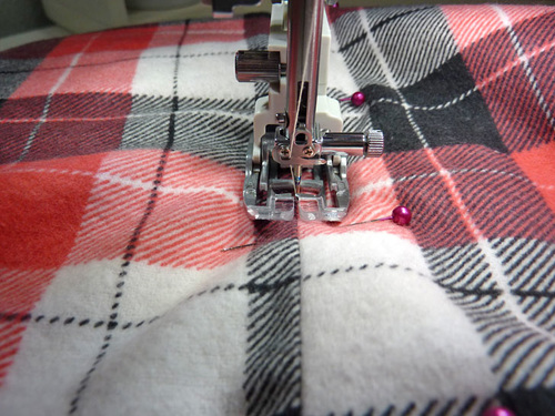 Match up the plaid and stitch the flannel pieces together