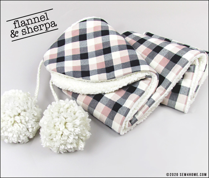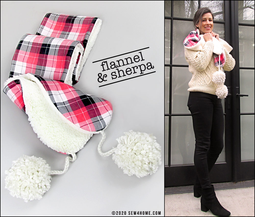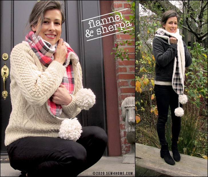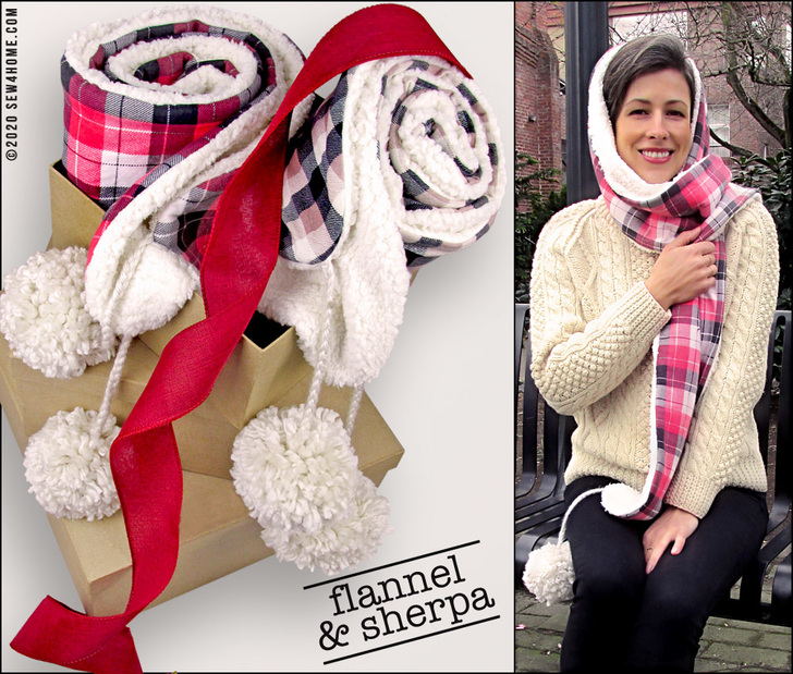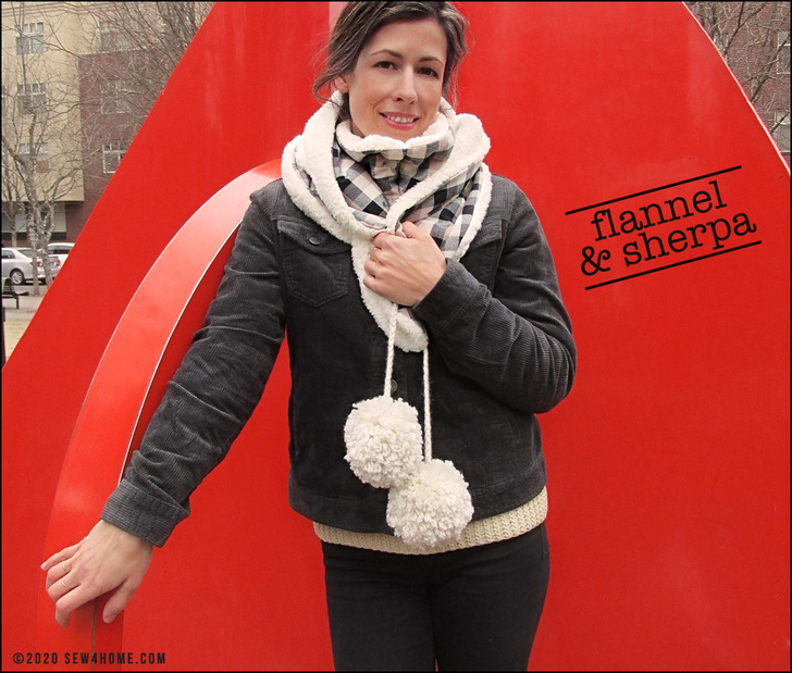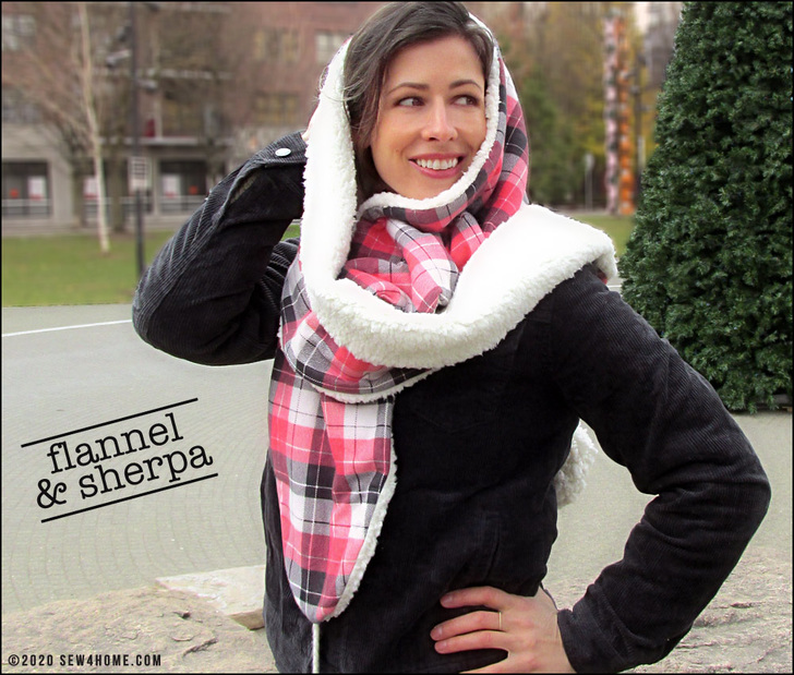 There’s a free pattern download to get the perfect gently rounded ends to the scarf panels. You’ll create the flannel side first then will use it as a template to cut the sherpa. Take a minute to check out our Sewing with Plush Fabric tutorial. Sherpa is not a difficult fabric to sew with, but to create optimum results, it helps to know the best practices to follow.