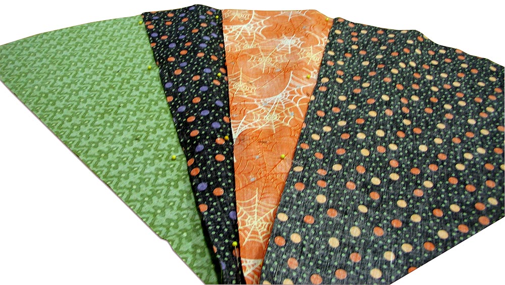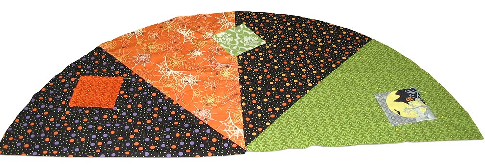 - Decide on the order for your four cape wedges. Ours alternate as follows: Black and Purple Dots, Orange Spiderweb, Black and Orange Dots, Green Wallpaper.