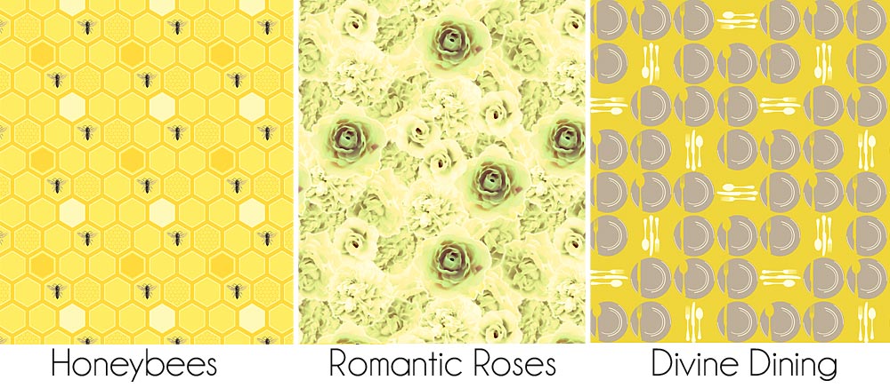 TH: The fabrics I’ve had the most orders for are the color chart and Pantone color chart I’ve put together. Definitely not quite what I had envisioned, but I’m glad they’re helpful to others out there as well as myself! I’ve had some orders of a honeybee design I did for a Flickr group doing an ‘I Spy’ quilt challenge. My Divine Dining and Romantic Roses collections also get ‘favorited’ and ordered occasionally.