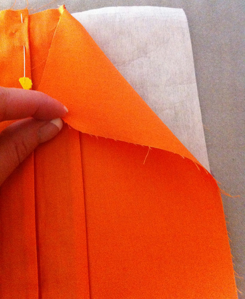 - Lay the pleated and pinned panel on top of the interfacing. Lightly pin the two panels together.