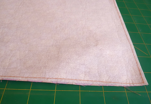 - Measure 4½” from the top raw edge and mark a horizontal line. (Yes, that is top edge at the bottom of the photo below.)