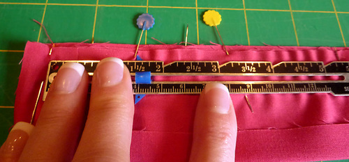 - From each seam (of each loop) measure 1½” to the left of the seam and 1½” to the right of seam. Place a pin at each of these points.