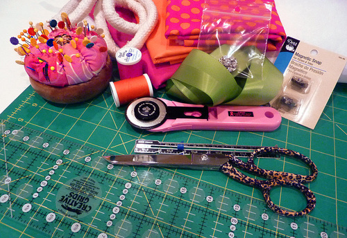 - For the optional accent bow: One yard of 1½” wide ribbon, One ½” – ¾” decorative button (we used a rhinestone button for extra bling), seam sealant