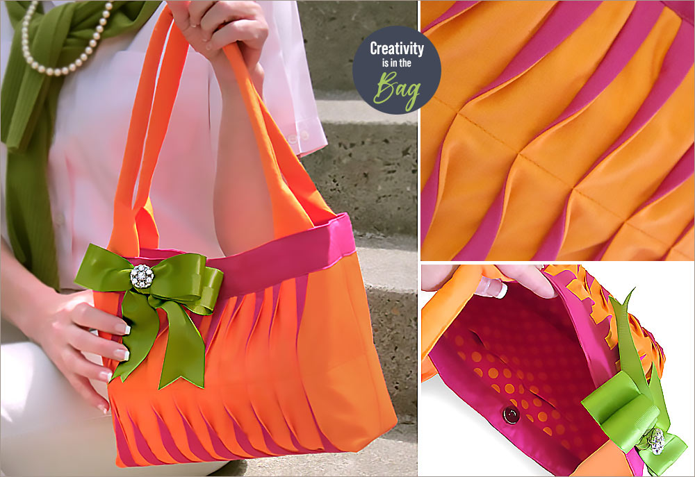 First, check out our amazing step-by-step Wave Tuck Tutorial. Then, come back and try out your cool new skills on this very cute, very unique handbag with its gorgeous contrasting wave tucks on both the front and back.