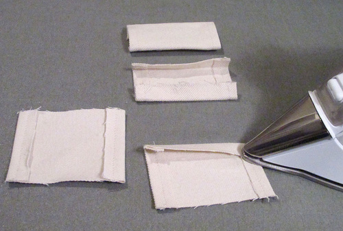 - Turn the strap right side out through the opening(s). Push out the corners so they are nice and sharp. Press in the raw edges at the opening(s) so they are flush with the sewn seam. Press the entire strap flat.