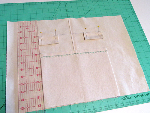 NOTE: We drew in a horizontal line at 3″ down from the top raw edge of the exterior panel to insure our loops would be perfectly parallel.