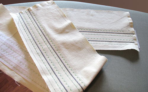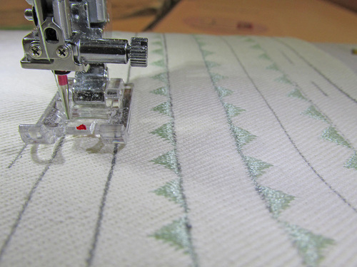 - With all your embellishment guidelines in place, set up your machine for decorative stitching as you did above for the pocket stitching.