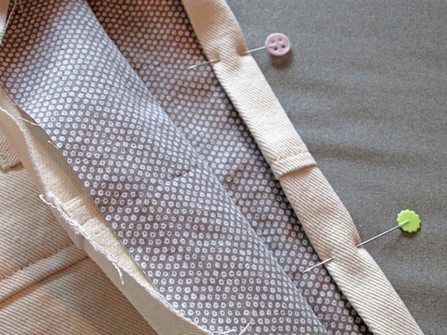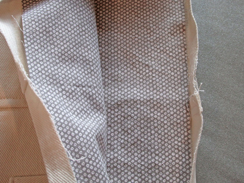 - Slip the raw edge of the lining under the folded top edge of the exterior.