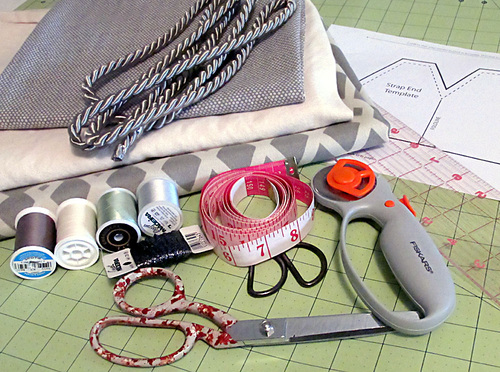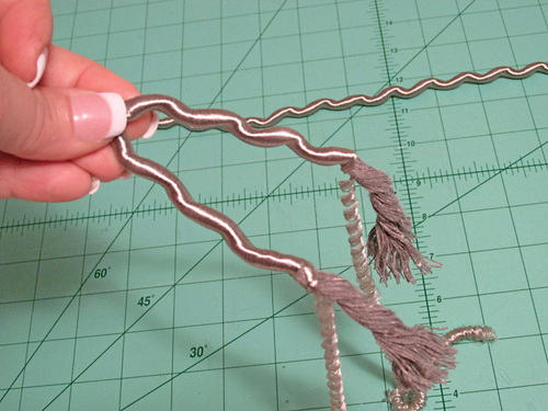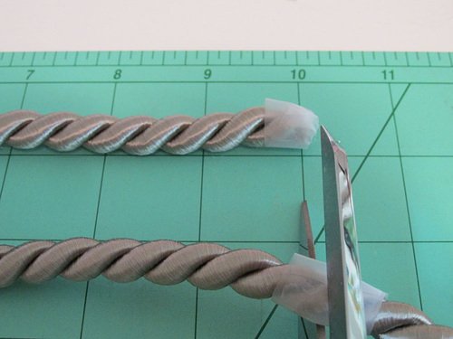 - 2½ yards of ⅜” – ½” twisted cord; we used a soft gray metallic twisted cord