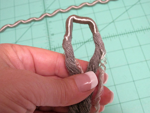 - Gather up all the curly rayon threads you unraveled from the cord. Smooth them together into a single strand (they won’t make a perfect strand; that’s okay, just gather them together).