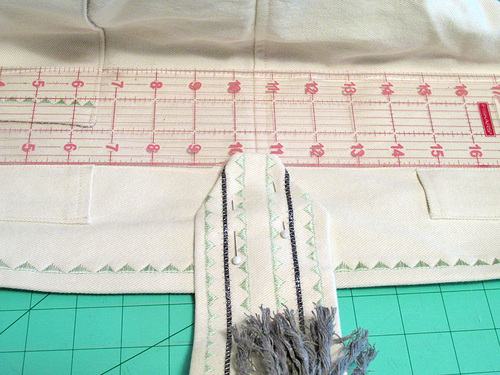 - Using a fabric pen or pencil, measure ½” down from the top seamed edge and draw a horizontal line. This will be the decorative stitching guide line.