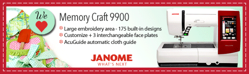 - Re-thread the machine with your chosen rayon thread in the top (we used a pale sage green) and a quality bobbin thread. Select the same simple decorative stitch used on the pocket. We chose a triangle (Statin Stitch 09 on our Janome MC9900). We adjusted the width to 6.0 and the length to 2.5.