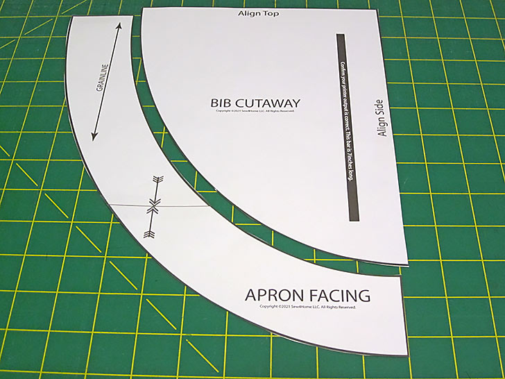- Download and print out our two patterns sheets: the Bib Cutaway and the two pieces that make up the Bib Facing. These patterns have been bundled into ONE PDF to make the download easier.
