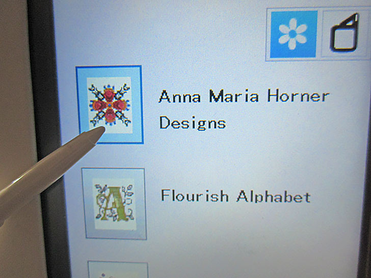 - Select your embroidery design. We chose an Anna Maria Horner built-in design on our Janome Skyline S9.