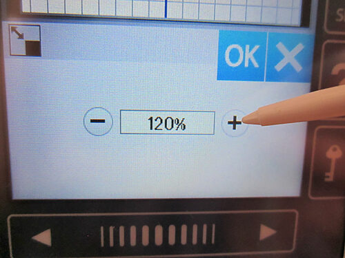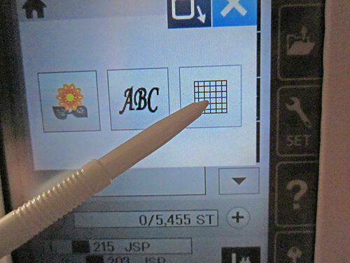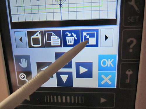 - The Cross Stitch Flower we chose was not quite as large as we wanted for our apron bib. But the flexibility of the Janome on-screen editing makes it easy to enlarge. We simply brought the selected design onto the grid screen.