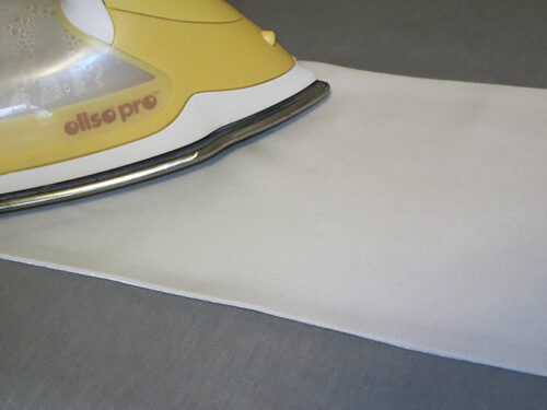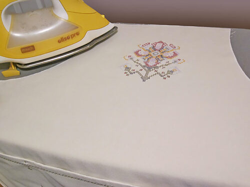 - Press the top of the bib, using a pressing cloth to protect the machine embroidery.