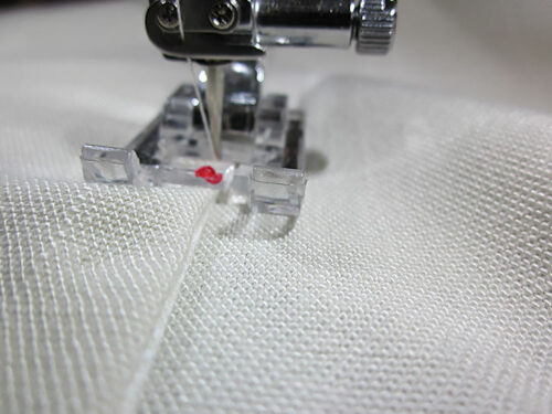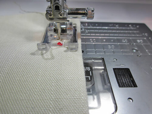 - As a reference for position, the center of our chosen stitch is approximately ⅝” down from the top seamed edge.