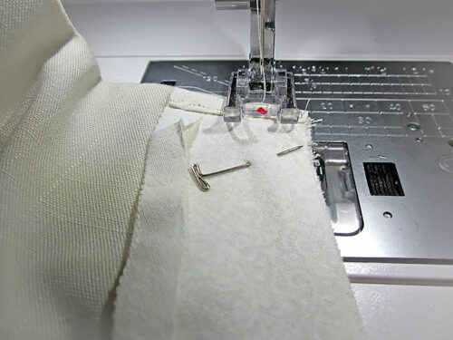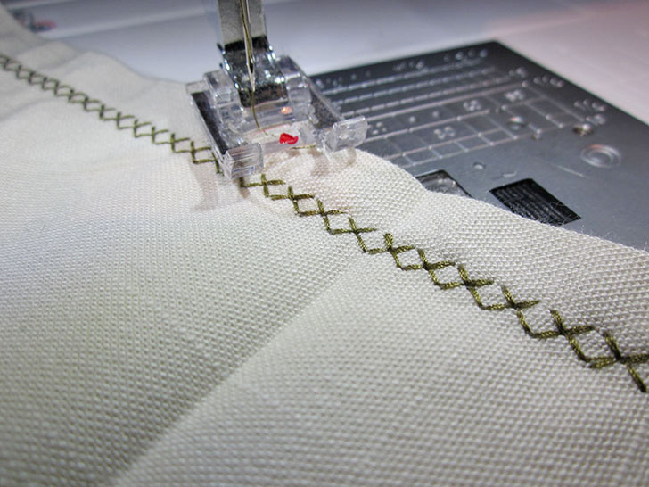 - Re-set for a slightly lengthened stitch, edgestitch along the folded edges.