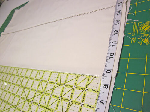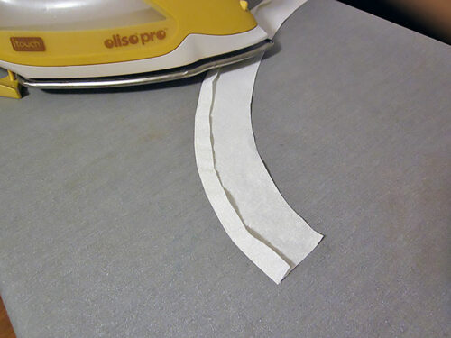 - As you did with the armhole facings, stitch a ¼” guide line along one 13” edge. Then press back along this guide line.