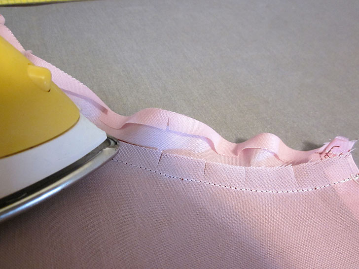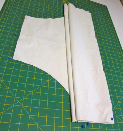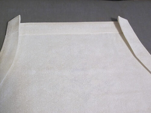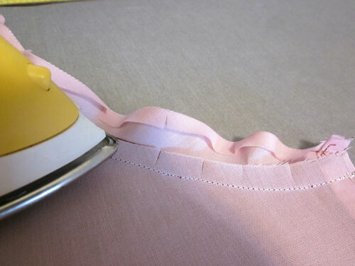- Flatten the layers, which are now wrong sides together, so the top edge and armhole curves of both layers are flush. Press well.