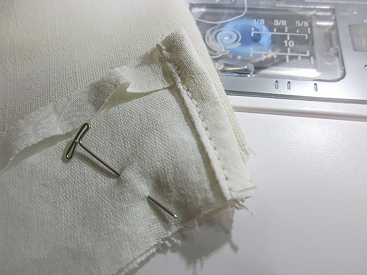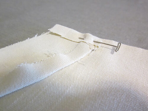 - Place the two panels right sides together and pin along the top and bottom edges. The 8” side edges remain un-pinned.
